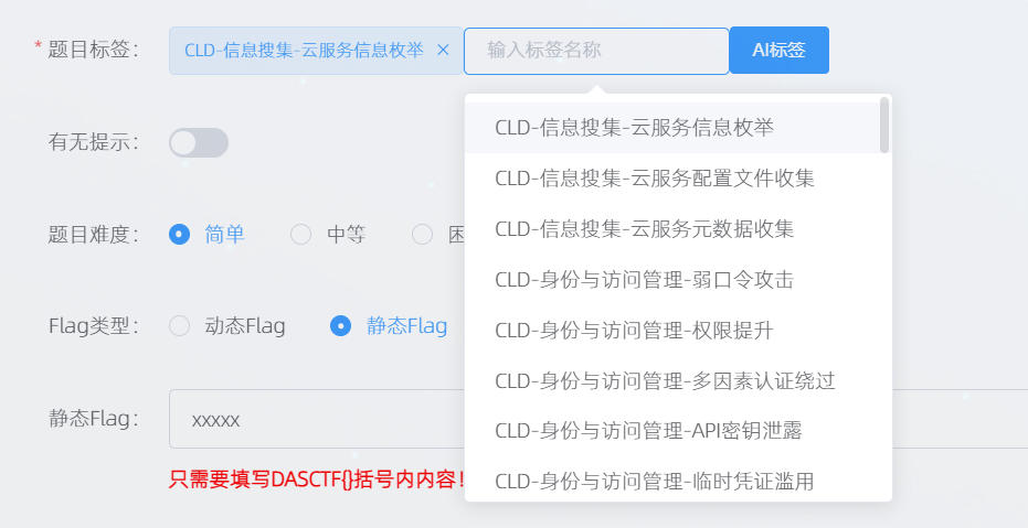 * 动态flag(**ps: 这里如果是静态flag,就填“DASCTF{xxxxxxx}”格式的正确flag即可**)
