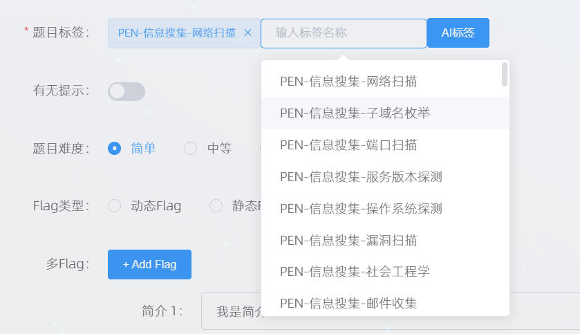 依次输入简介,flag,选择难度。